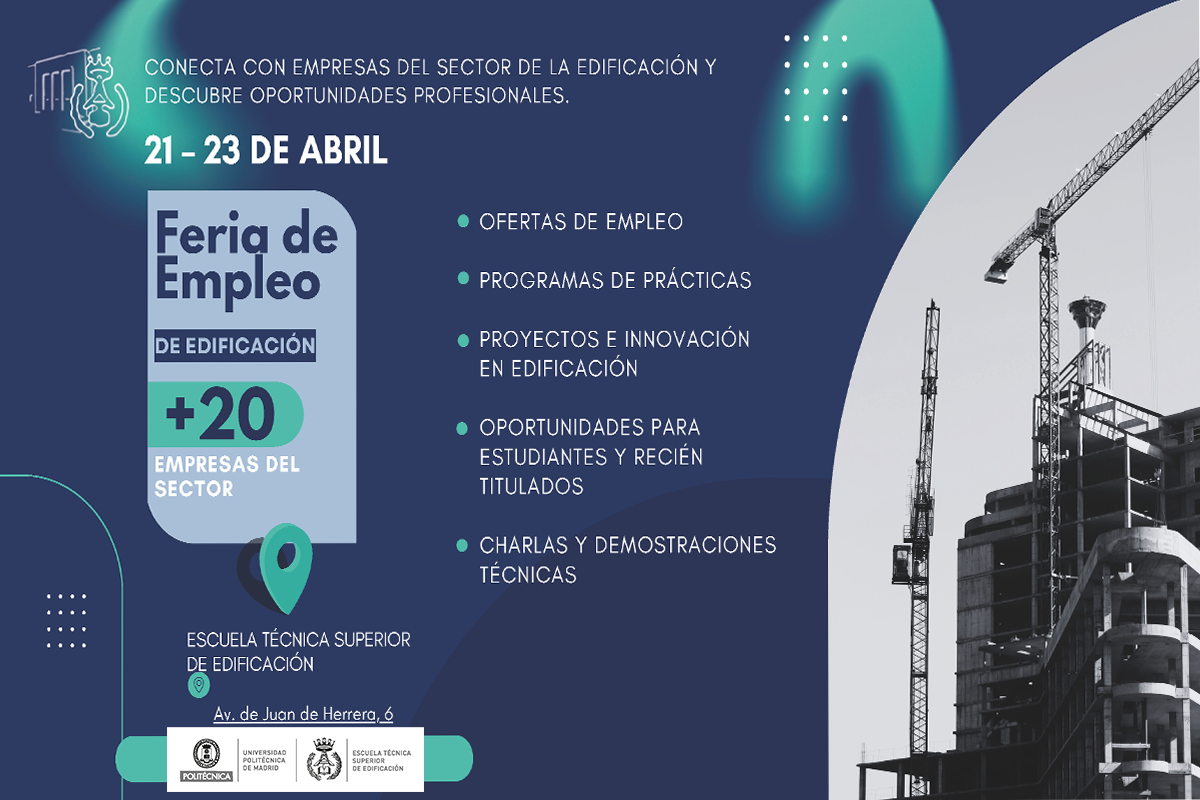 La Delegación de Alumnos de la Escuela Técnica Superior de Edificación organiza una nueva edición de su Feria de Empleo, dirigida a estudiantes y egresados interesados en impulsar su desarrollo profesional dentro del sector de la edificación.